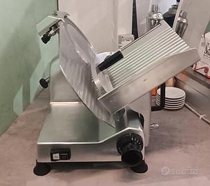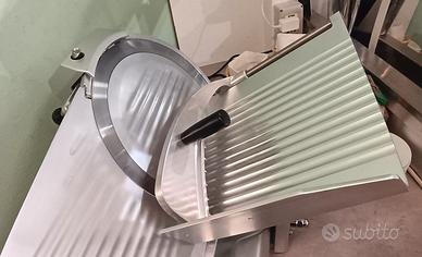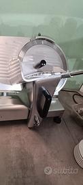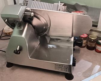 Vendo affettatrice professionale a gravità HBS300 (lama 30Cm). Comprata giorno 1-07-2025 ancora in garanzia. Struttura in lega leggera di alluminio anodizzato – anello fisso protezione lama – paralama estraibile – pomello regolazione vela con scala graduata – affilatoio fisso con coppia di smerigli per l’affilatura della lama – blocco piatto-vela. DATI TECNICI: Potenza 250W Peso 23Kg Spessore taglio da 0 a 16 mm Piano di lavoro 43x30 cm Dimensioni 56x49x45(h) Perfettamente funzionante, in vendita perchè sono passato ad un modello più grande. Visibile e ritirabile a Berceto(PR). Non si effettua la spedizione