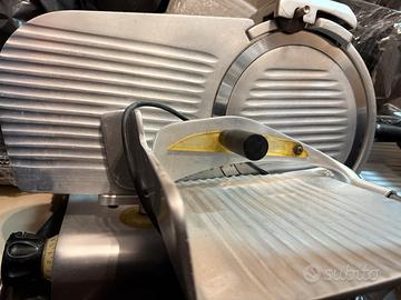Affettatrice da bar a caduta lama 30cm 45x32 È in buone condizioni e funzionante bisognerebbe solo cambiare le pietre all’interno per limare la lama.