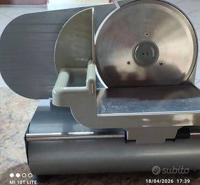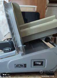 Vendo affettatrice Ausonia Italia originale made in Italy lama da 22 cm 7kg metallo. Completa di pressamerce motore da 220 W pari al nuovo. Vendo per inutilizzo a € 85,00. Nb: spedizione a carico dell' acquirente. Nb: non è il modello da €55 venduto su Amazon. Quello e' fatto di plastica, lama da 17 cm peso 3 kg.
