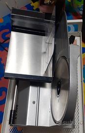 Affettatrice usata una sola volta, praticamente nuova, con lama di scorta, manuale di istruzioni. Diametro delle lame cm. 19