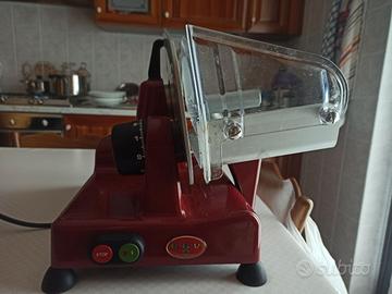 Vendesi affettatrice R. G. V. serie LUXOR usata poco ,in ottimo stato ,causa inutilizzo.Larghezza della fetta regolabile.Diametro lama 200 MM potenza 110 Watt. Prezzo trattabile.