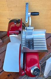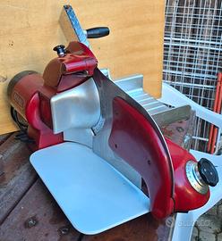 Affettatrice Berkel modello 114 originale, produzione italiana anni ’50. Macchina funzionante, usata poco, completa di affilatore originale e accessori. Struttura in ghisa e alluminio, mai modificata. Ottime condizioni estetiche e meccaniche, normali segni del tempo. Ideale per: collezionisti salumerie/enoteche di livello locali vintage o arredo di pregio Ritiro a mano consigliato, disponibile per prova. Prezzo trattabile dopo visione.