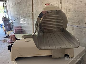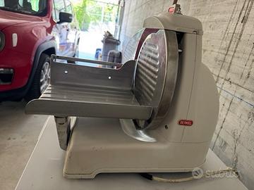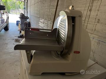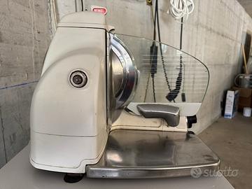 Vendo affettatrice Berkel modello 836 professionale modello estremamente raro in quanto proveniente dal Sudafrica, perfettamente funzionante. Prodotta dal 1956 al 1968, questa macchina è tra le prime in produzione in quanto l'etichetta riporta "In attesa di brevetto". Lama da 255mm. Misure L48xP36xH42. 27Kg. Fornita con lama nuova (originale Berkel) e lama precedentemente usata. Inoltre ricambio nuovo per sistema di affilatura. Disponibile filmato per provare funzionamento. Manuale a corredo. Visibile e ritiratile in Angera (VA). Disponibile spedizione (a vostro carico) previo saldo con bonifico immediato.