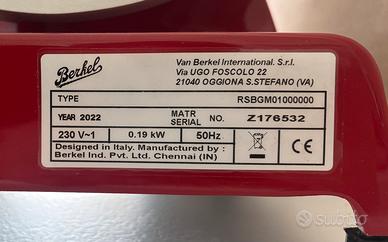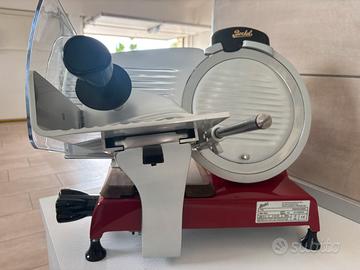 Vendo affettatrice BERKEL RED LINE 250 robusta e precisa, ideale per uso domestico. Facile da pulire e progettata per durare nel tempo. Caratteristiche principali: • Lama: Diametro 250 mm in acciaio temprato (taglio perfetto). • Materiali: Struttura in alluminio (vela, carrello e piatto). • Potenza: Motore da 190W . • Pulizia: Piatto coprilama smontabile per un'igiene rapida. • Extra: Tagliere da presentazione (materiale: frassino con piastra in acciaio inox) Dettagli: • Trasmissione a cinghia (silenziosa). • Certificazione CE domestico. • Condizioni: Ottime RITIRO SOLO A MANO. Peezzo poco trattabile