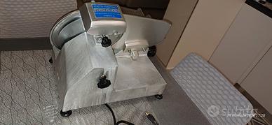 Affettatrice professionale tutta in acciaio.. lama da 20cm. con affila lama e regolazione spessore di taglio.
