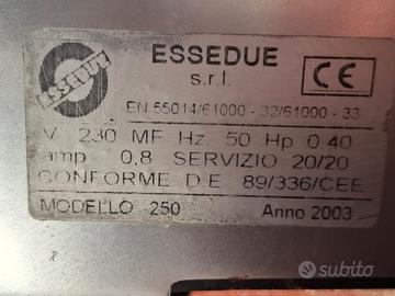 Affettatrice elettrica ESSEDUE Mod 250 Tamagnini, anno 2003, molto ben tenuta, marchio CE, completa di plastiche di sicurezza. Diametro lama 25cm