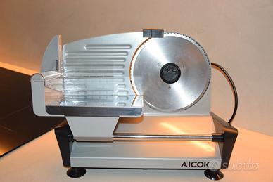 Affettatrice Elettrica da Casa AICOK, 150W, Spessore Regolabile da 0 a 15 mm per Carne, Pane, Verdure, Lama in acciaio inossidabile da 19cm, Facile da Pulire.