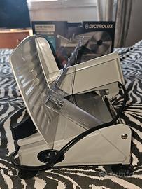 Descrizione Vendo affettatrice elettrica professionale per uso domestico marca Dictrolux, modello Power da 200W. L'apparecchio è in condizioni eccellenti, usato pochissimo e perfettamente funzionante. Ideale per affettare con precisione salumi, formaggi, pane e verdure. Caratteristiche principali: Potenza: Motore potenziato da 200W (molto più performante dei modelli standard da 100W). Lama: In acciaio Inox da 19 cm di diametro, impeccabile e senza segni di usura. Regolazione taglio: Spessore regolabile da 0 a 15 mm. Sicurezza: Blocco di sicurezza della lama e piedini a ventosa antiscivolo per la massima stabilità. Comodità: Piano di taglio scorrevole e braccio pressamerce incluso. Extra: Completa di scatola originale e manualistica, ritiro presso mio domicilio genova struppa o spedizione a carico vostro, prezzo un pochino trattabile