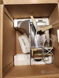 Vendo affettatrice vintage professionale Graef EH-170 T, un pezzo di ingegneria tedesca rinomato per precisione e durata. Condizioni: L'oggetto è nuovo, mai usato, completo di scatola originale e imballaggi. Fondo di magazzino in condizioni impeccabili. Caratteristiche: Struttura robusta e motore estremamente silenzioso e potente. Lama di alta precisione (ideale per salumi, formaggi e pane). Design vintage iconico, perfetto anche come elemento d'arredo per cucine di design. Modello EH-170 T, garanzia di affidabilità tedesca. Prezzo: 90€. Disponibile per ritiro a mano a Brunico o dintorni o spedizione sicura con TuttoSubito / V1nted