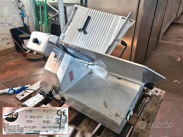 Affetta salumi professionale in inox per panifici usata, marca Fac S.r.l mod. F370 del 2016 funzionante a 230v. Adatta per il taglio di: salumi, formaggi, pane, etc. in ambienti come: supermercati, macellerie, panifici, gastronomie, etc.