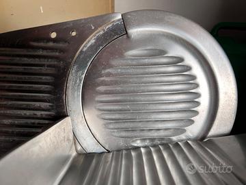 Affettatrice la felsinea originale tutta acciaio e inox con lama d 225 e accessori. Acciaio e alluminio, funziona e ha potenza per affettare prosciutto intero. Dimensioni esterne 40x40x 30 altezza