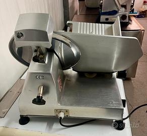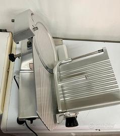 Affettatrice ideale per salumi, carni, formaggi e pane. Lama da 250mm in acciaio temprato per un taglio uniforme e preciso. con motore professionale da 140 W Affilatoio fisso integrato che mantiene la lama sempre affilata nel tempo. Anello fisso di protezione lama, regolazione dello spessore