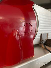 Usata pochissime volte perché non adatta a tagliare prosciutto crudo, perfetta per affettati più morbidi come prosiutto cotto, mortadella, salame, verdure. Leggermente arrugginita per inutilizzo la lama come in foto.