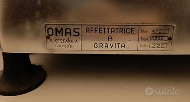 Affettatrice a gravità OMAS, lama 29, funzionante, da fare la manutenzione.