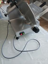 affettatrice in alluminio anodizzato. Lama in acciaio, regolabile.