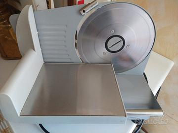 affettatrice elettrica colore argento piedini antiscivolo interruttore on/of colore Argento x affettare carne.. salumi verdure pane dimensioni lunghezza 30 cm profondità 25 cm