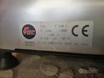 Affettatrice fac f 250 e Lama 25 cm diametro Pari al nuovo Euro 300 Astenersi da offerte indecenti nuova costerebbe 550 euro