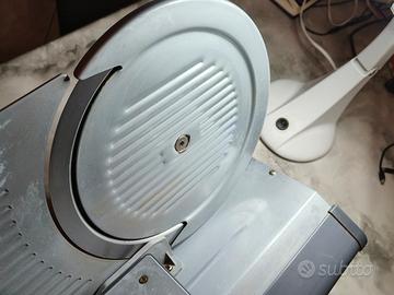 Vendo causa inutilizzo affettatrice professionale perfettamente funzionante. Lama di diametro 25 centimetri. Si taglia qualunque cosa: affettati, verdure insaccati, etc etc. Non ha alcun problema, è robusta e affidabile. PER ALTRE FOTO chiedere in privato. Smontabile e facilmente lavabile/pulibile. Made in Italy. Per ritiro in zona scrivermi in privato.