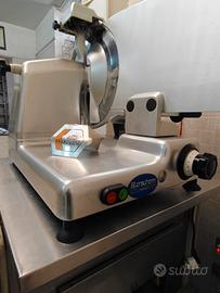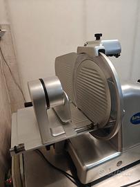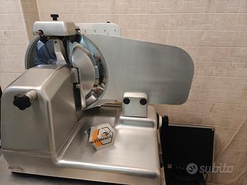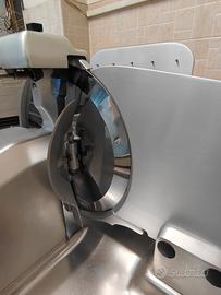 Modello professionale facile da usare, adatta anche a giovani banconisti del settore alimentare alle prime armi! Altamente consigliata per attività salumeria e macelleria, ma proprio per la qualità dei materiali di costruzione e la semplicità con la quale puó essere utilizzata, la rende un valido alleato in qualsiasi tipo di attività dove occorre un buon taglio che non produca sprechi o maltrattamento dei prodotti. Presenta lievi segni di usura (piccoli graffi e medi graffi ma niente di rotto), perfettamente funzionante e pronta all'uso. Lieve percentuale di usura della lama dovuta all'utilizzo ma in ottime condizioni da taglio quindi NON si deve cambiare. Punto forte è l'alimentazione a 220v con classica spina domestica, che la rende comoda da inserire in qualunque contesto lavorativo!