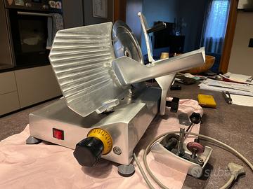 Affettatrice professionale suprema comprata da(Monti bilance)in ottime condizioni disco da25 può affettare anche prosciutti 5/6kg con arrota disco incorporato , tutta di alluminiol.