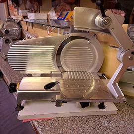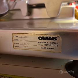 In vendita affettatrice professionale a gravità, ideale per salumi e carni, del rinomato marchio italiano OMAS Food Machinery. Macchina di alta qualità, costruzione robusta e interamente in metallo.