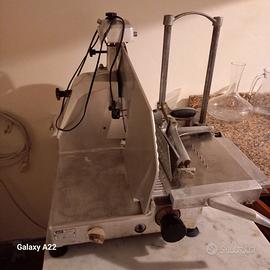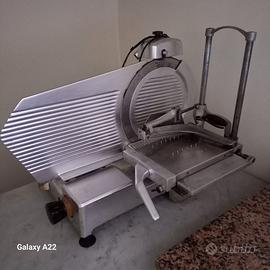 Affettatrice professionale 220 v. usata perfettamente funzionante molto pesante con affila lama , tutta originale. Primo modello elettrico dopo quelle a volano