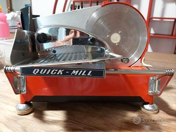 Affettatrice quick mill vintage anni 60 (arancione) completamente restaurata in ogni sua parte funziona perfettamente dimensioni : 40x30 cm circa lama : 18 cm circa Disponibile anche verde vintage e bianca