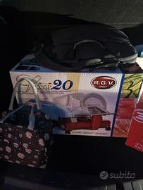 Affettatrice 110 Watt di potenza, realizzata in alluminio fuso con base laccata, coprilama, piatto e paratia in alluminio ossidato, albero portalama su doppio cuscinetto a sfere, motore professionale tipo asincrono ventilato, lama professionale temperata, anello fisso di protezione della lama, diametro lama 200mm, spessore massimo di taglio 15mm.