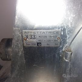 Vendesi affettatrice rasspe V33 con motore trifase. Alcuni segni di utilizzo ma perfettamente funzionante. Vendita con la clausola «visto e piaciuto» con esclusione di garanzia. Ritiro a cura dell’acquirente.