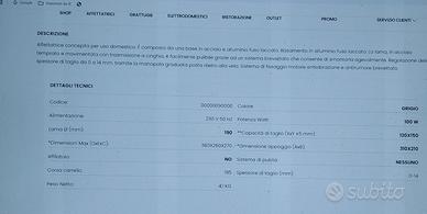 Vendo affettatrice RGV AUSONIA con lama 19 cm inox come da foto Praticamente nuova Dimensioni e specifiche nell’ultima foto Visionabile e ritirabile Via Duse quartiere San Donato Bologna Prezzo 25 € non trattabile