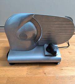 Affettatrice per uso domestico marca RGV Ausonia 190, usata ma ancora in ottime condizioni: Caratteristiche: Diametro Lama: 190 mm Spessore massimo di taglio: 14 mm Affilatoio: Amovibile Base in acciaio e alluminio fuso laccato Spessore max taglio 14 mm Corsa carrello:195 mm Lama in acciaio temperato Regolazione dello spessore di taglio millimetrico da 0 a 14 mm tramite manopola graduata L'affettatrice presenta alcuni segni normali dovuti all'uso, così come da foto, ma che non inficiano la funzionalità dell'oggetto.