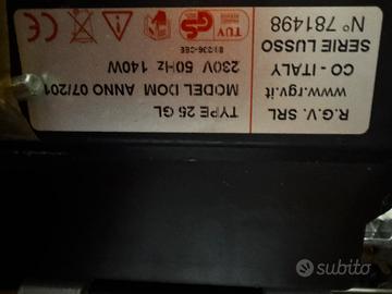 Affettatrice domestica RGV modello Lusso 25 GL. Lama: Diametro di 250 mm in acciaio temprato. Motore: Potenza di 140 W. Caratteristiche: Include un affilatoio amovibile a doppio smeriglio. Uso: Ideale per affettare salumi, carni, formaggi e pane. Per informazioni 3518029481