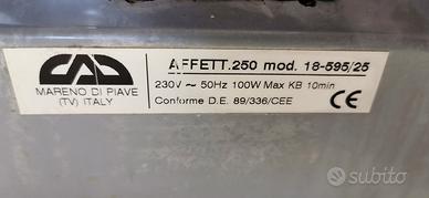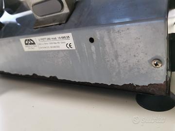 Vendo affettatrice lama diametro 25 cm x inutilizzo. Nella parte inferiore si è staccata parte dello smalto (non compromette il funzionamento e non va a contatto con il cibo).