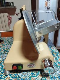Affettatrice prodotta interamente in Italia, design curato nei minimi particolari a partire dal basamento nero dalle linee arrotondate. Grazie alla lama professionale di cui è dotata possono essere affettati diversi tipi di alimenti tra cui salumi, verdura, frutta, pane e formaggi.