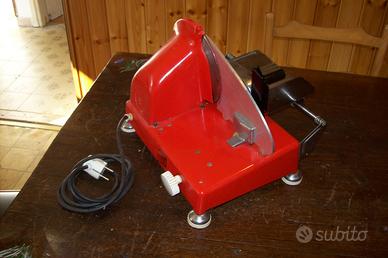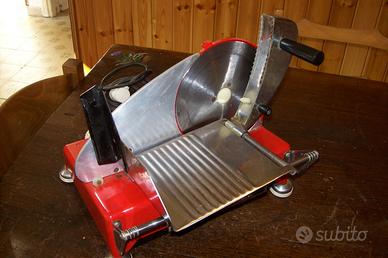 Affettatrice compatta. Parti metalliche in alluminio e acciaio.