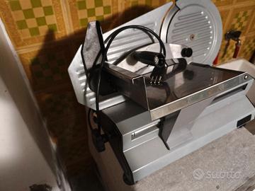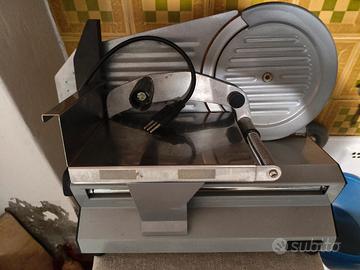 affettatrice usata poco in alluminio, misure lama cm 21, larghezza cm 32, lunghezza cm 42 e altezza cm 34.