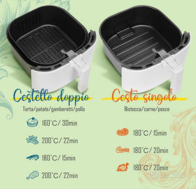 【Pannello LED One-Touch】7 Scelte già impostate : torta, patate, gamberetti, pollo, bistecca, carne, pesce. Basta scegliere il preset con 1 semplice tocco sul display . È inoltre possibile impostare la temperatura di cottura (80—200°°gradi centigradi)/ tempo (0-60min) e mantenere caldo.