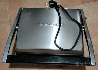 Aigostar Samson - Griglia multifunzione per panini maker da 2000W con 2 piani di cottura 29.5 * 23.5cm. Temperatura regolabile fino a 180° e vassoio raccogli briciole estraibile. Color argento. Usato solo una stagione.