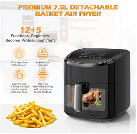 EUARY Friggitrice Ad Aria Calda 7,5 Litri, Air Fryer XXL con 17 Programmi, 1700W Friggitrice Senza Olio per 6-8 persone, LED Touch Screen, 32 Ricette Cartacee [Cinque lingue compreso l'italiano]