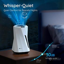 Non troverete nessun umidificatore così: è elegante, efficente, pulito e pratico grazie alla sua tecnologia avanzata nell'eliminare patogeni e grazie al suo filtro lavabile che previene la creazione di qualsiasi tipo di muffa. Può addiritttura fare da deumidificatore.