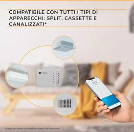 Le comunicazioni tra Aidoo e il condizionatore d'aria sono garantite poiché il collegamento con le apparecchiature di condizionamento d'aria è cablato, non a infrarossi. Si collega al router tramite Wi-Fi e in questa versione l'associazione tra Aidoo e il router è ancora più semplice (con l'aiuto del Bluetooth del telefono)