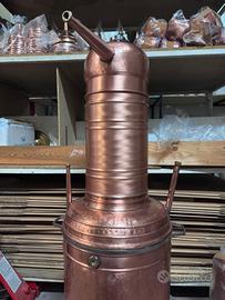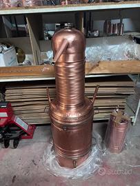 Alambicco distillatore da 100 litri a bagnomaria, tutto in rame uso alimentare, tubi serpentina uso sanitario, Made in Italy, con colonna di deflemmazione. Spedizione in tutta Italia, contrassegno accettato.