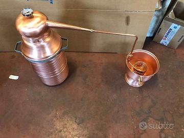 Alambicco distillatore da 30 litri a serpentina, tutto in rame massiccio uso alimentare, tubi serpentina uso sanitario, in offerta a 460€. Spedizione in tutta Italia, contrassegno accettato.