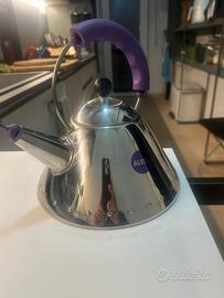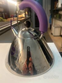 Bollitore 3909 in acciaio di Michael Graves e Virgil Abloh. Anno di inizio produzione 2022 Con un mix di aspetti culturali differenti, il bollitore di design 3909 trasporta direttamente in America. Il fenomeno del basketball e il suo immaginario multiculturale, parte integrante della storia personale di Abloh, con il mondo del design e i suoi riferimenti codificati. Il fischietto, completamente ridisegnato, assume la forma di un giocatore di basket the schiaccia con potenza a canestro, mentre i colori del manico e del pomolo si accendono di un viola intenso. Selezionato da Virgil Abloh per un’operazione di re-design, il bollitore creato da Michael Graves rinasce a nuova icona in un clash iconografico che rivela affinità inaspettate tra gli ambiti culturali coinvolti - dal postmodernismo di Michael Graves all’approccio ecletticamente inclusivo di Virgil Abloh. Molto più di una semplice rilettura, l'operazione della Virgil Abloh Securities assorbe ed elabora diversi riferimenti, amplificandoli esponenzialmente.