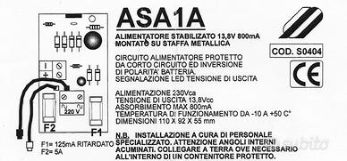 Alimentatore stabilizzato 13,8V 800mA montato su staffa metallica.