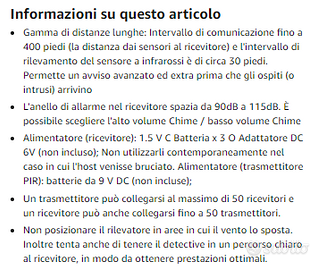Allarme senza fili wireless Oggetto nuovo mai usato. Un ricevitore + due sensori di movimento