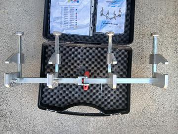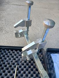 Allineatore in alluminio Plasson Mod. Easy Clamp S utilizzato per la preparazione alla saldatura di tubi in plastica dal diam. 32 al 110 mm.Consente di operare con diversi angoli di lavoro grazie allo snodo centrale graduato con multipli di 7,5° per l'accoppiamento con gomiti manicotti,tee,riduzioni.