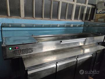 Alzatina refrigerata porta ingredienti per pizzeria, inox completa di castello vetri.