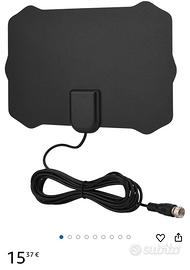 Vendo 2 antenne Ricevi segnali con un raggio di 50 miglia. Ti fa divertire a guardare programmi HD meravigliosi e gratuiti. Oltre a questo, può ricevere segnali ATSC, -T, -2 e ISDB. Offre una ricezione del segnale TV digitale ad alto guadagno e bassa frequenza e un significativo miglioramento del segnale nell'utilizzo effettivo. Aumentare il receptiom dei programmi TV ed eliminare la pausa delle immagini del mosaico. Elevata stabilità e prestazioni. Il design sottile e piccolo ti permette di metterlo sul muro, sul tavolo o sulla finestra mentre ti fa divertire a guardare gli show HD. Può essere dipinto in modo per adattarsi a qualsiasi decorazione domestica e bellezza senza compromettere la ricezione o la perdita di segnale. Il cavo lungo 13 piedi lo rende facile Il design multidirezionale attira segnali da tutte le direzioni. Veloce e facile da installare. Facile da usare.