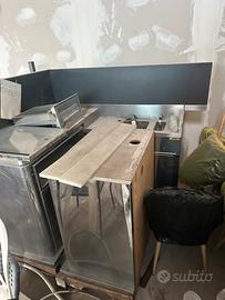 Vendo angolo bar in acciao. Materiale in legno rivestito d’acciao. Compreso rubinetto piccolo e vani con sportello e cassetti. Ottimo materiale da adattare.